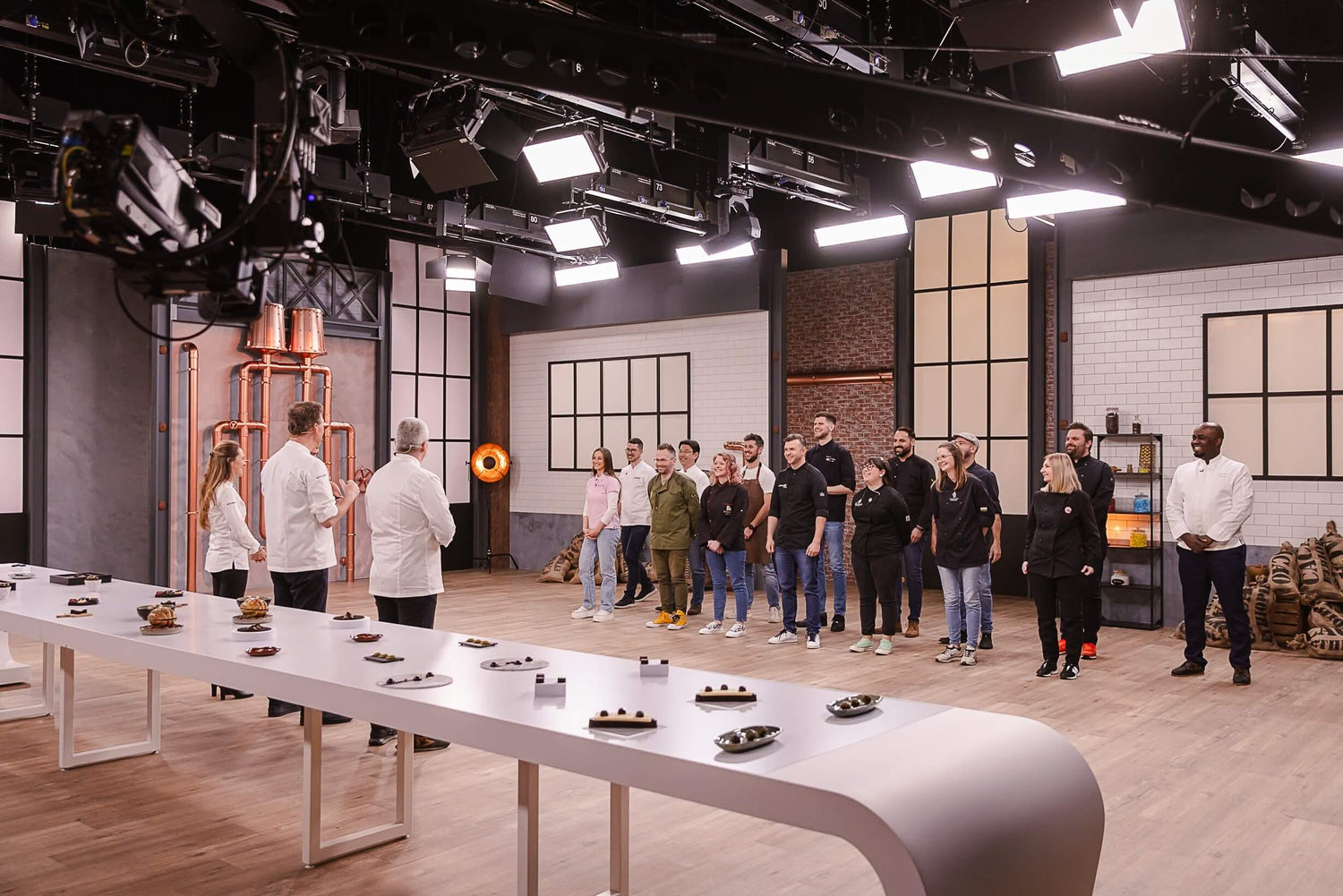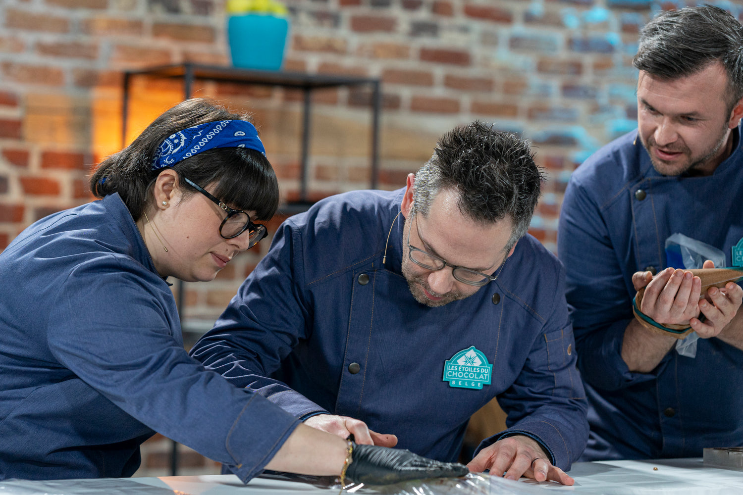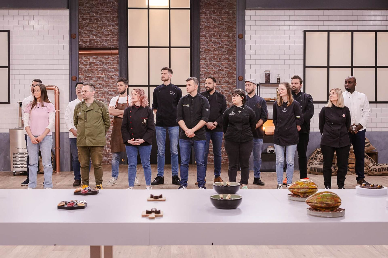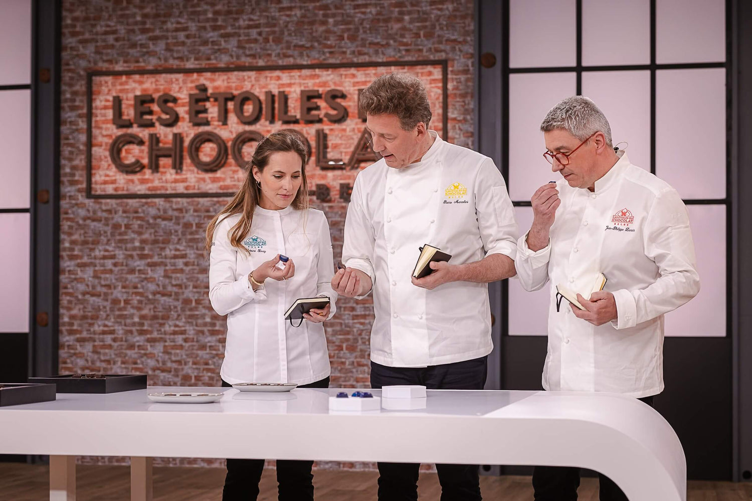 The 15 chocolatiers, divided into three teams, are ready to face the challenge. Their mission: to recreate, in a stunning trompe-l’œil, the favorite dish of David Jeanmotte, Livia Dushkoff, and Joëlle Scoriels, who will be by their side throughout the competition.