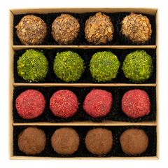 Geniet van onze mix van Belgische herfsttruffels in een ambachtelijke geschenkdoos. Handgemaakt in Brussel, combineert dit seizoensassortiment rijke cacao met gastronomische smaken, een elegant geschenk of verwennerij.