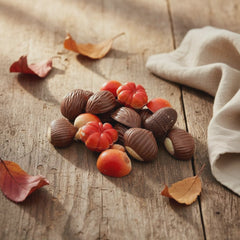 Geniet van Belgische chocolade herfstvruchten 150g, ambachtelijke creaties gemaakt met fijne cacao. Een seizoensgeschenk voor fijnproevers met de smaken van de herfst.