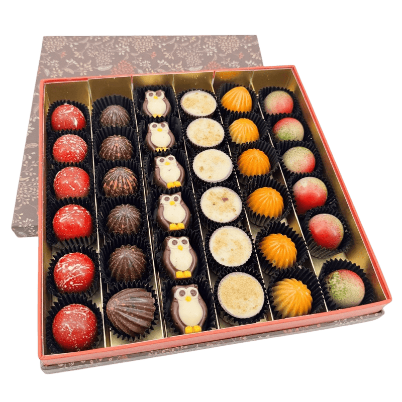 Geniet van onze Herfstfluisterpralines 540g, handgemaakt in Belgische chocolade. Een seizoensgebonden selectie voor fijnproevers, perfect om cadeau te geven of om gezellig in te verwennen.