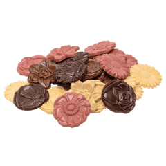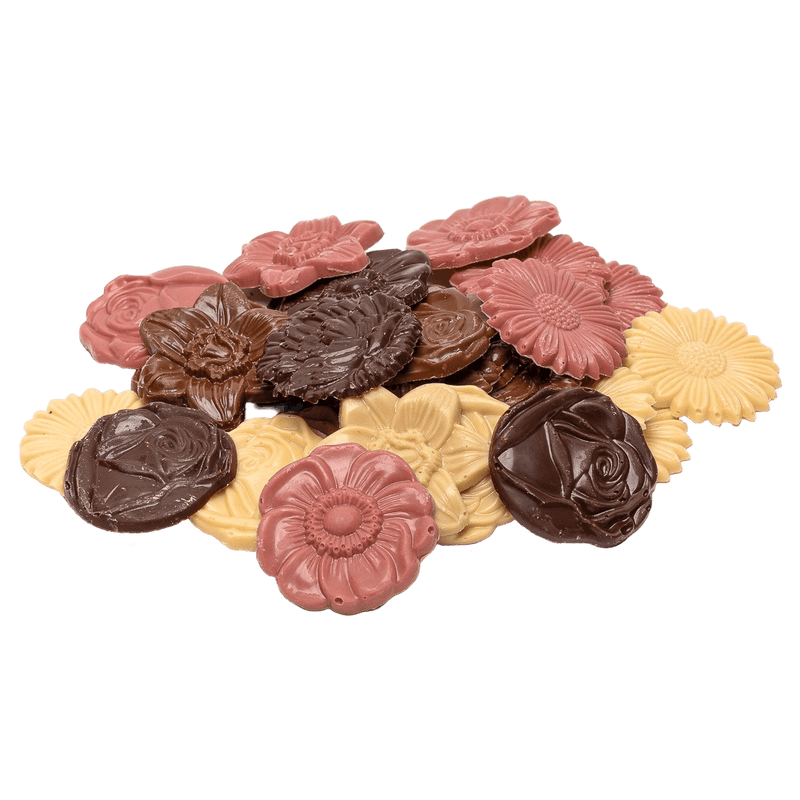 Geniet van een heerlijke mix van 120g handgemaakte chocoladebloemen, perfect om cadeau te geven of om te genieten van rijke, romige chocolade met een bloemig tintje.