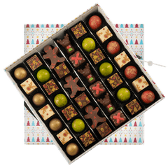 Maak kennis met onze kerstdoos Mijn Berenvriend met 40 handgemaakte Belgische pralines (570g) gepresenteerd in een charmante feestelijke geschenkdoos. Een perfecte mix van traditie, creativiteit en verwennerij om de magie van Kerstmis te delen.