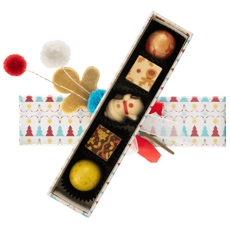 Maak kennis met onze kerstdoos Mijn Berenvriend met 5 handgemaakte Belgische pralines (75g) gepresenteerd in een charmante feestelijke geschenkdoos. Een perfecte mix van traditie, creativiteit en verwennerij om de magie van Kerstmis te delen.