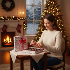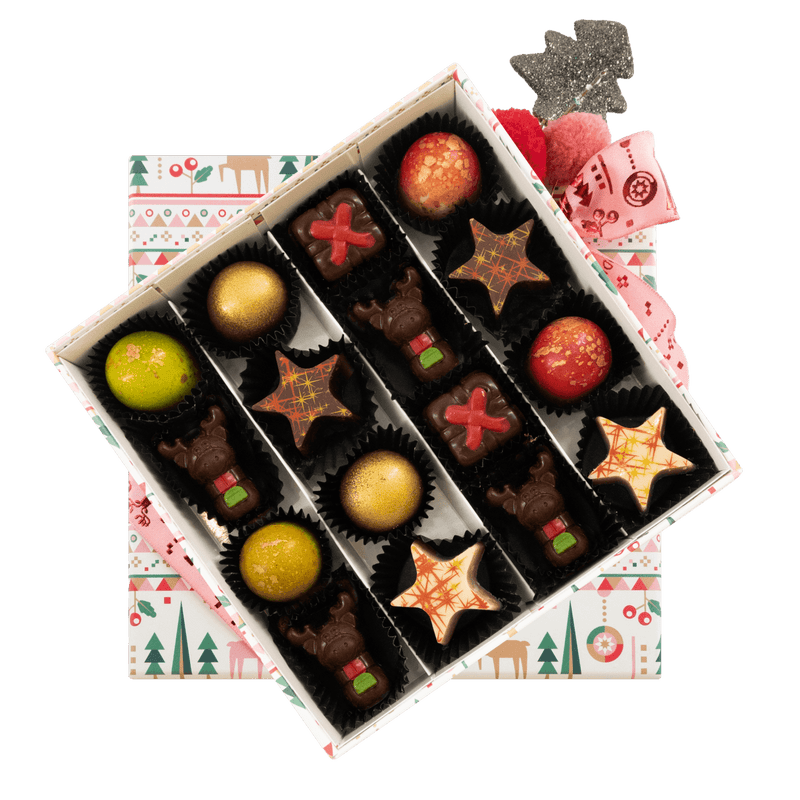 Step into the magic of our Christmas winter wonderland box with 16 handcrafted Belgian pralines (240g). A festive, elegant selection of bean-to-bar creations, perfect for gifting and celebrating the season in true Belgian chocolate style. ☃️