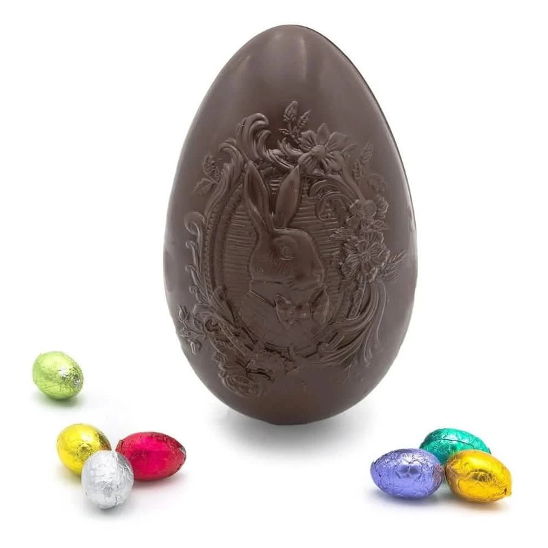 Donker chocolade konijntje paasei met 6 kleine eitjes