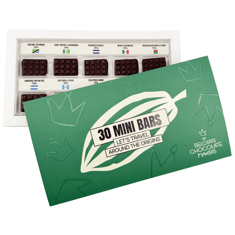 Ontdek onze Belgische chocolade ontdekkingsdoos met 30 minirepen van 10 verschillende cacaosoorten. Proef 10 cacaosoorten, ambachtelijke smaken en gastronomische creaties, het perfecte cadeau of verwennerij.