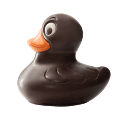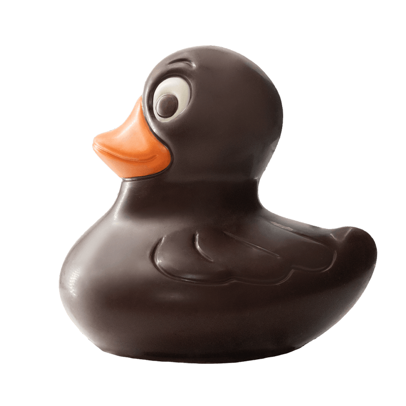Elegante 75g handgemaakte donkere chocolade eend, gemaakt met fijne cacao uit de Filippijnen en zorgvuldig vervaardigd in Brussel, een rijke en feestelijke traktatie.