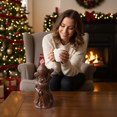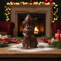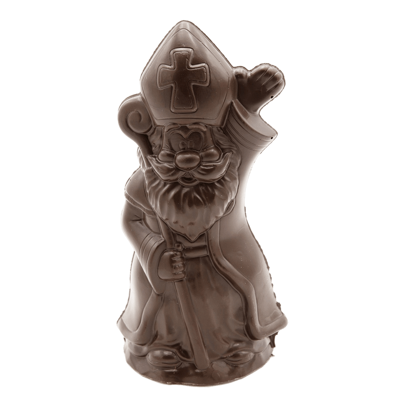 Vier het seizoen met Sinterklaas met scepter 250 g pure chocolade, handgemaakt in Brussel met rijke Filippijnse cacao voor een zachte en heerlijke feestelijke traktatie.