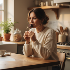 Nutritional values: Energie (100g): 2488 kJ/598 kcal. Eiwitten: 6 g; Vet: 39,8 g; Koolhydraten: 50.2 g.