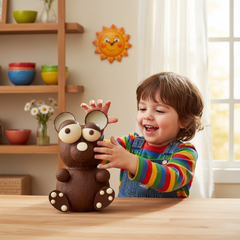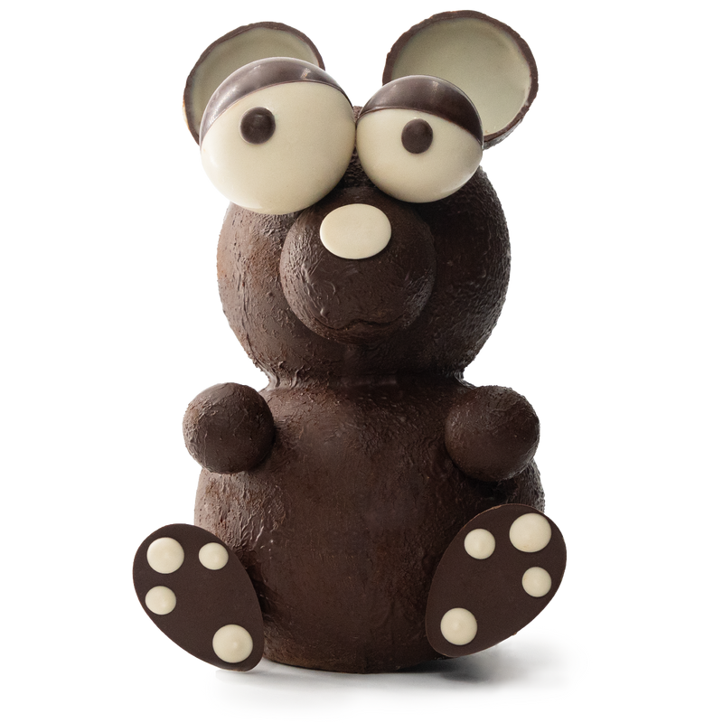 Ontdek onze 3D beer van pure chocolade, handgemaakt in Brussel met ethische cacao. Een unieke artisanale creatie, perfect als feestelijk geschenk of voor fijnproevers.