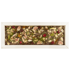 Ontdek onze Fantasie Belgische chocoladerepen 375g, handgemaakt met een heerlijke mix van vijg, cranberry, amandel, citroen en pistache. Een extra grote traktatie voor fijnproevers, perfect om cadeau te geven of om te verwennen.