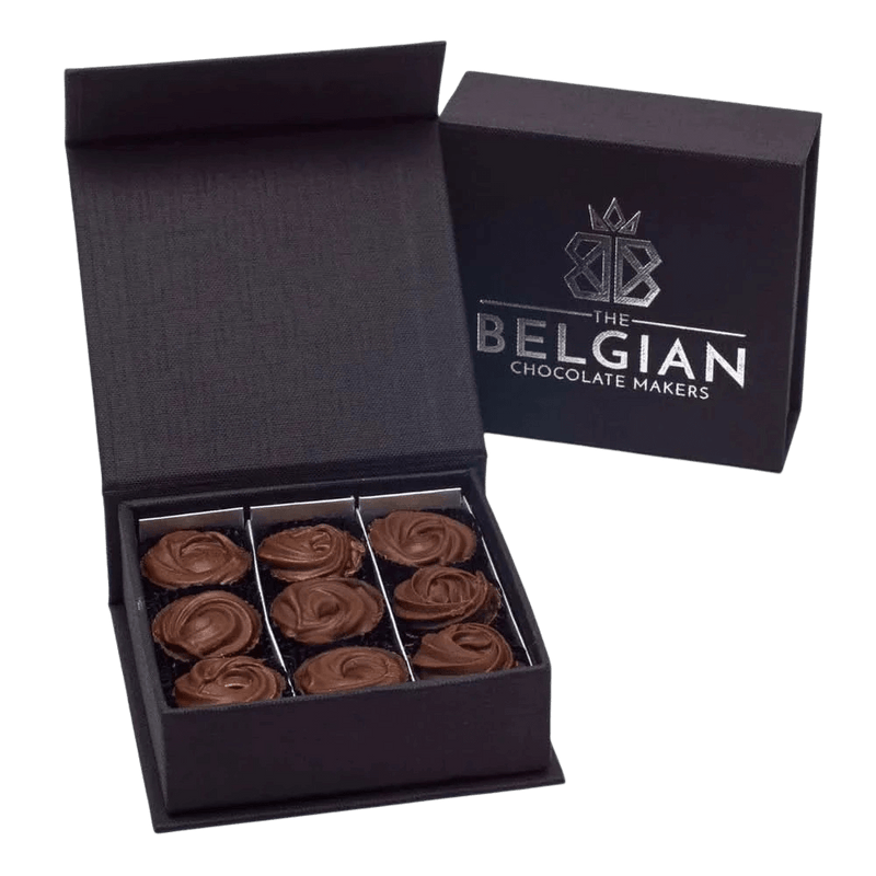 Verwen uzelf met onze luxe doos van 9 Belgische pralines in gianduja smaken, handgemaakt in Brussel met ethische cacao. Een verfijnd geschenk of een gastronomische traktatie.