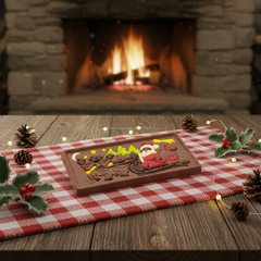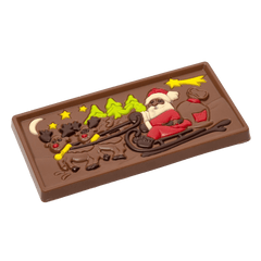 Geniet van de magie van Kerstmis met onze Kerstman op een slee melkchocoladereep. Handgemaakt in België van pure cacao voor een feestelijke traktatie voor fijnproevers.
