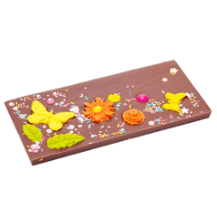 Vier het seizoen met onze 110g melkchocolade lentereep, handgemaakt in België met zijdezachte, eersteklas cacao, een vrolijke creatie geïnspireerd door de frisheid en schoonheid van de lente.