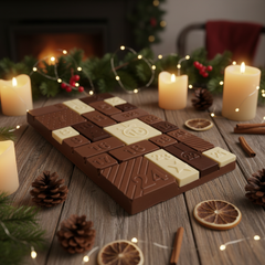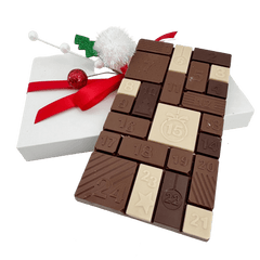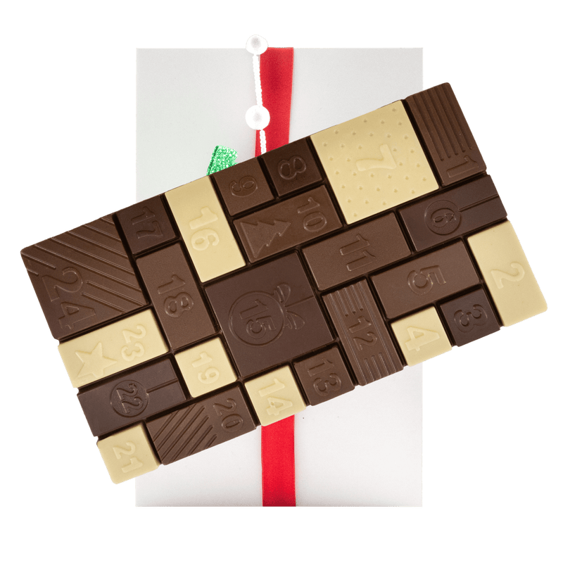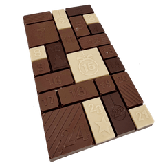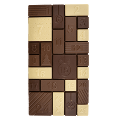 Tel af naar Kerstmis met onze melkchocolade adventskalender reep 200g, een feestelijke Belgische creatie met romige melkchocolade en vrolijk feestdagen design, perfect om de magie van elke dag voor Kerstmis te delen.