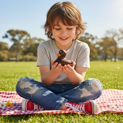 Geniet van onze handgemaakte Eend L in rijke melkchocolade, gemaakt in Brussel met de fijnste cacao uit Haïti. Een genot van 300 g voor elke chocoladeliefhebber.