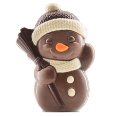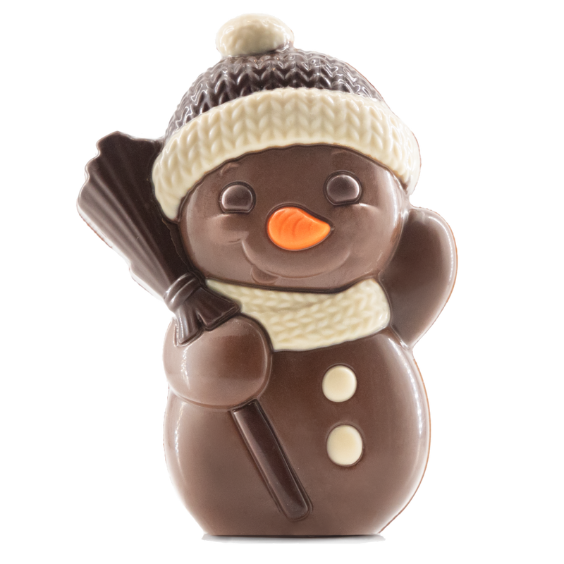 Geniet van onze handgemaakte Snowman in zachte melkchocolade, gemaakt in Brussel met eersteklas cacao uit Haïti. Een feestelijke traktatie van 150 g, perfect om cadeau te geven of om van te genieten.