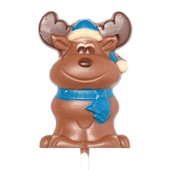 Schattige melkchocolade winter rendier lolly, handgemaakt in Brussel met Belgische chocolade van topkwaliteit. Een zoete en feestelijke traktatie voor het winterseizoen.