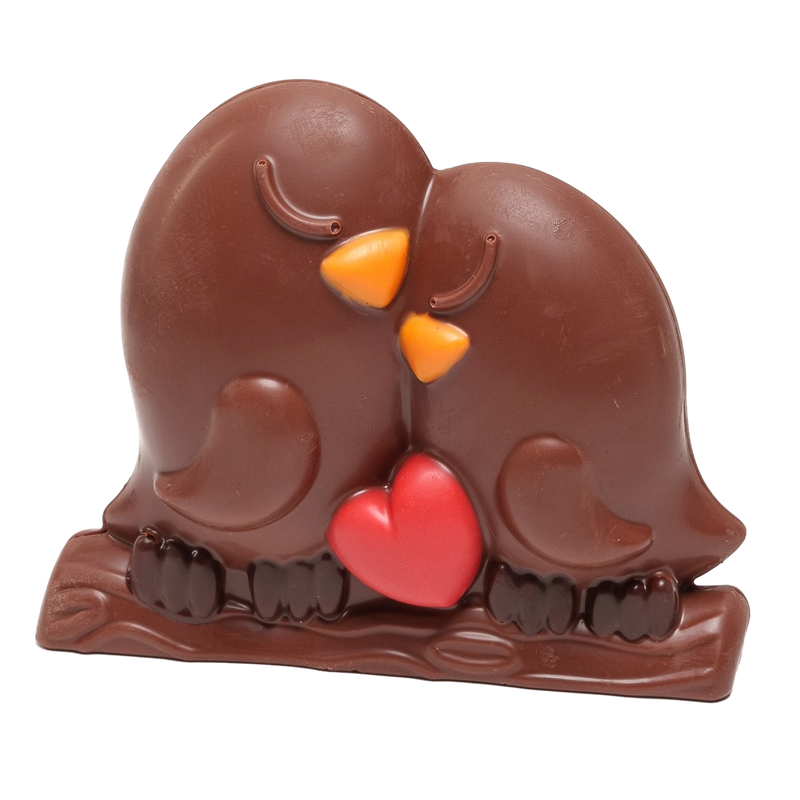 Vier de liefde met onze melkchocolade love birds (150g), een romantische creatie handgemaakt in Brussel van ethische bean-to-bar chocolade. Een teder Belgisch geschenk, gemaakt met zoetheid en zorg.