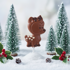Geniet van onze rendierlolly van melkchocolade, handgemaakt in Belgische chocolade. Een feestelijke en heerlijke traktatie, perfect om cadeau te geven met Kerstmis of voor feestelijke gelegenheden.