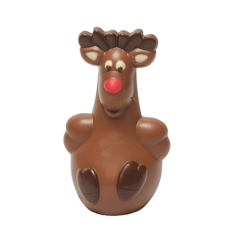Geniet van Rudolph 80 g melkchocolade, handgemaakt in Brussel met zachte Haïtiaanse cacao en romige melk voor een feestelijke en verwennende traktatie.