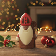Vier het seizoen met Sinterklaas chocolade 400g, handgemaakt in Brussel met zachte Haïtiaanse melkchocolade en een vleugje feestelijke magie voor een rijke, verwennende traktatie.