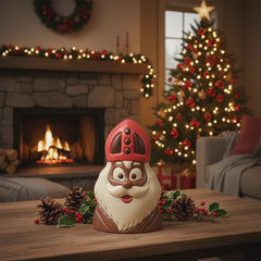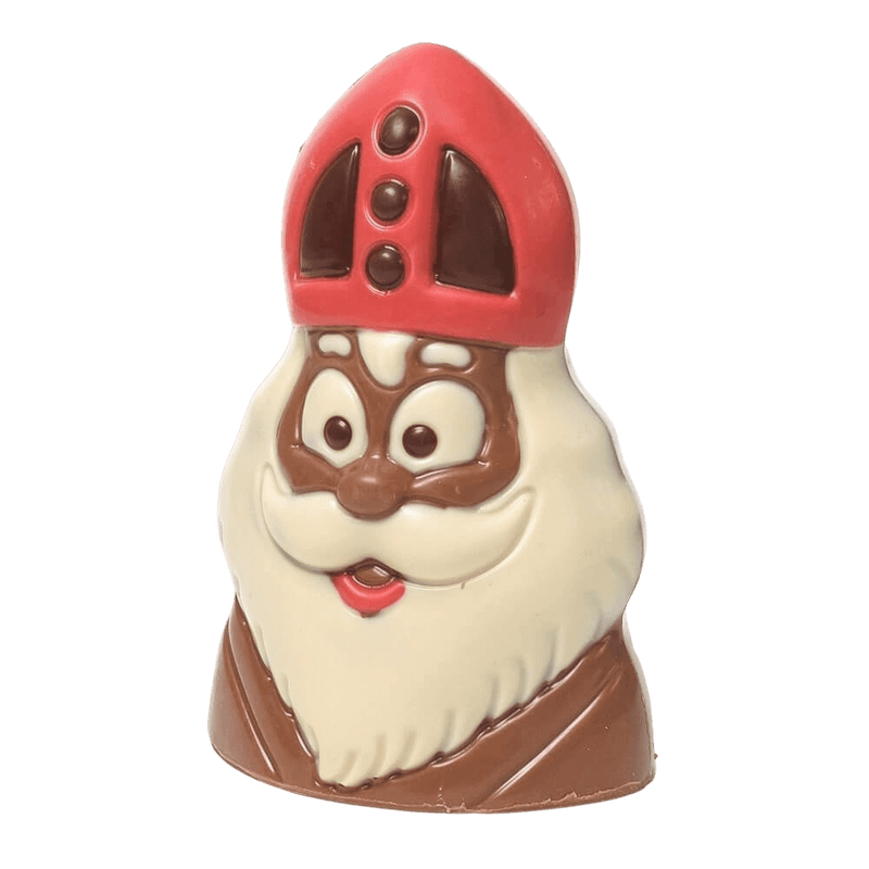 Geniet van onze 50g melkchocolade Sinterklaasbuste, handgemaakt in België van eersteklas cacao, een charmante feestelijke creatie die de geest van traditie en verwennerij vastlegt.