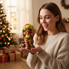 Ontdek Père Fouettard (Metgezel van Sinterklaas) in een handgemaakt Belgisch melkchocoladefiguurtje (230g). Gemaakt in Brussel van ethische, traceerbare cacao, een speels eerbetoon aan de Belgische kersttraditie en Sinterklaasfolklore.