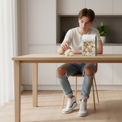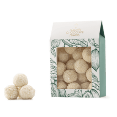 Geniet van onze 160g zak Belgische chocoladetruffels met kokosnoot. Handgemaakt in Brussel, een huwelijk tussen rijke cacao en exotische kokosnootschilfers voor een verfijnde gastronomische traktatie.