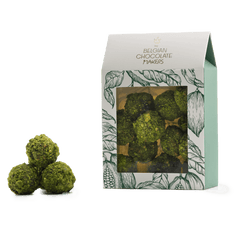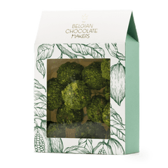 Verwen uzelf met onze 160g zak Belgische chocoladetruffels met pistache. Handgemaakt in Brussel, een combinatie van rijke cacao met delicate notige noten voor een gastronomische ervaring.