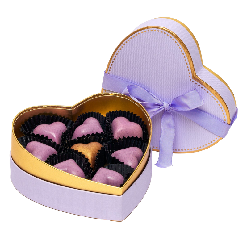 Verwen jezelf met onze paarse hartendoos met 9 Belgische pralines (135g), een luxueuze selectie handgemaakte pralines gemaakt van boon tot boon in Brussel. Een perfect Belgisch geschenk vol liefde en ethische zoetheid.