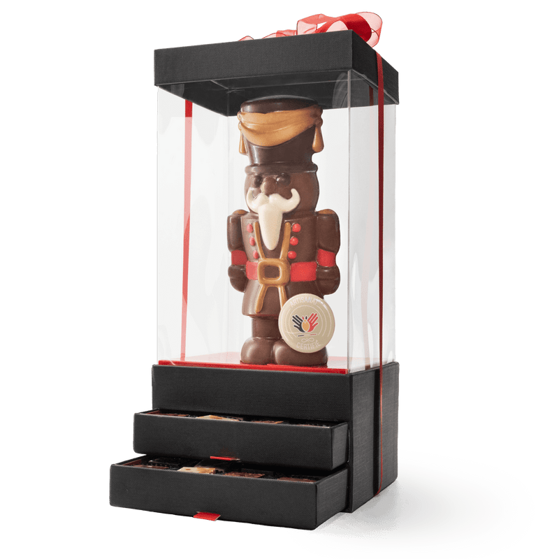 Ontdek onze handgemaakte Skyline Notenkraker met 700 g fijne pralines, gemaakt in Brussel. Een feestelijk pronkstuk om cadeau te geven of om te delen.