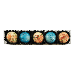 Stokje van 5 gekleurde praliné (mangue, gezouten karamel)