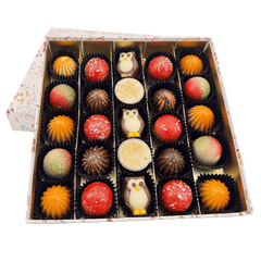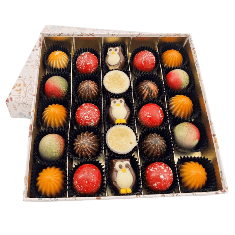 Ontdek onze warme schaduwpralines 375g, handgemaakte Belgische pralines met rijke seizoenssmaken. Een geschenkdoos voor fijnproevers, perfect om te delen of om te verwennen.