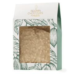 Ontdek onze ambachtelijke witte chocolade reep met gepofte rijst, handgemaakt voor een romige zoetheid en lichte, knapperige crunch in elke hap.