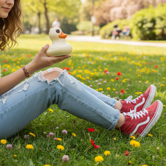 Verwen uzelf met onze handgemaakte eend in romige witte chocolade, gemaakt met pure cacaoboter in Brussel. Een royale 420 g voor echte chocoladeliefhebbers.