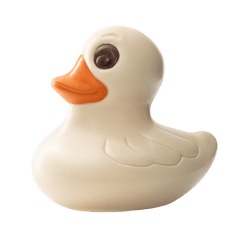 Charmante 75g handgemaakte witte chocolade eend, gemaakt met pure cacaoboter en zorgvuldig gecreëerd in Brussel, een heerlijke en romige traktatie.