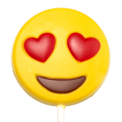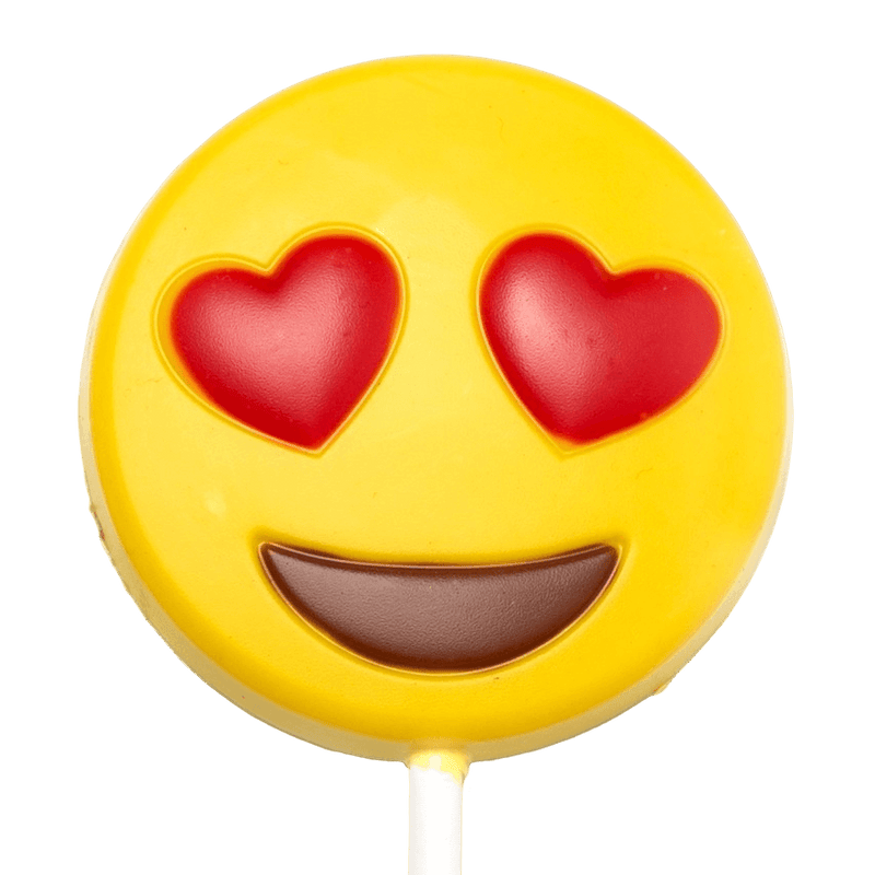 Handgemaakte chocolade lolly in de vorm van een liefdesemoji met witte chocolade, een leuk en heerlijk ambachtelijk cadeau voor chocoladeliefhebbers van alle leeftijden.