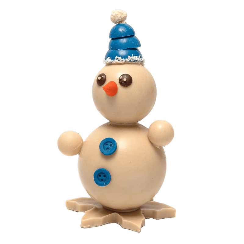 Geniet van onze handgemaakte 3D Sneeuwman in romige witte chocolade, gemaakt in Brussel met pure cacaoboter. Een feestelijke traktatie van 150 g, perfect om cadeau te geven of om te delen.