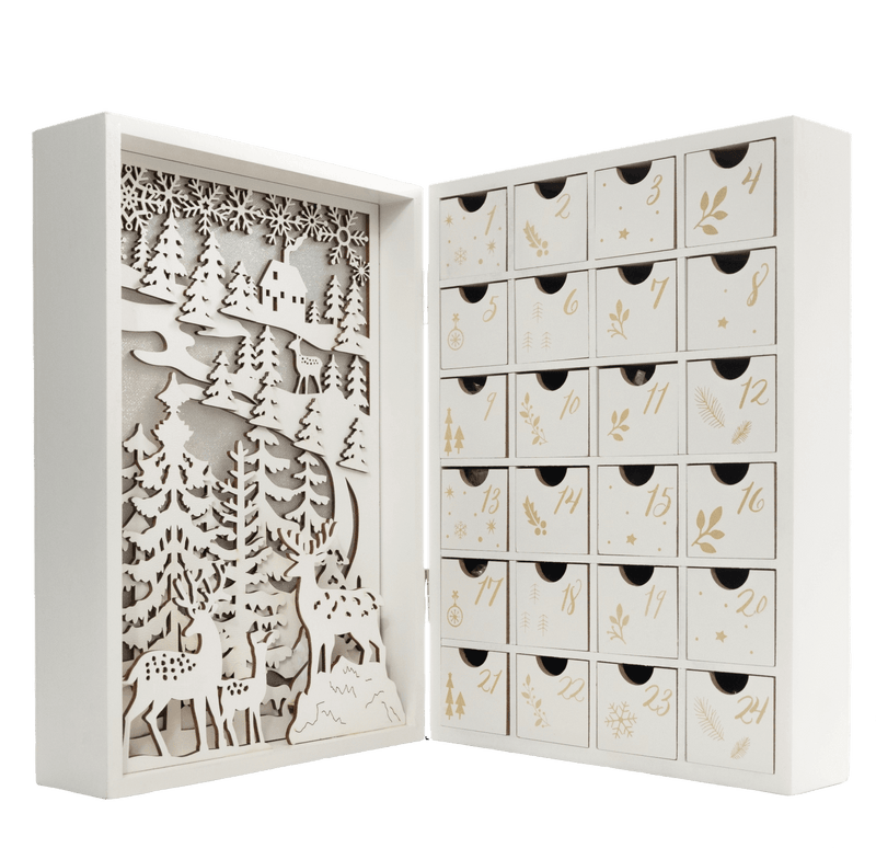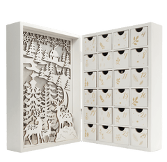 Tel af naar Kerstmis met ons herbruikbare houten verlichte adventskalenderboek ! Achter elk venster verbergt zich een heerlijk handgemaakt Belgisch chocoladefiguurtje. Een charmant aandenken om jaar na jaar van te genieten.